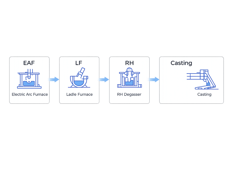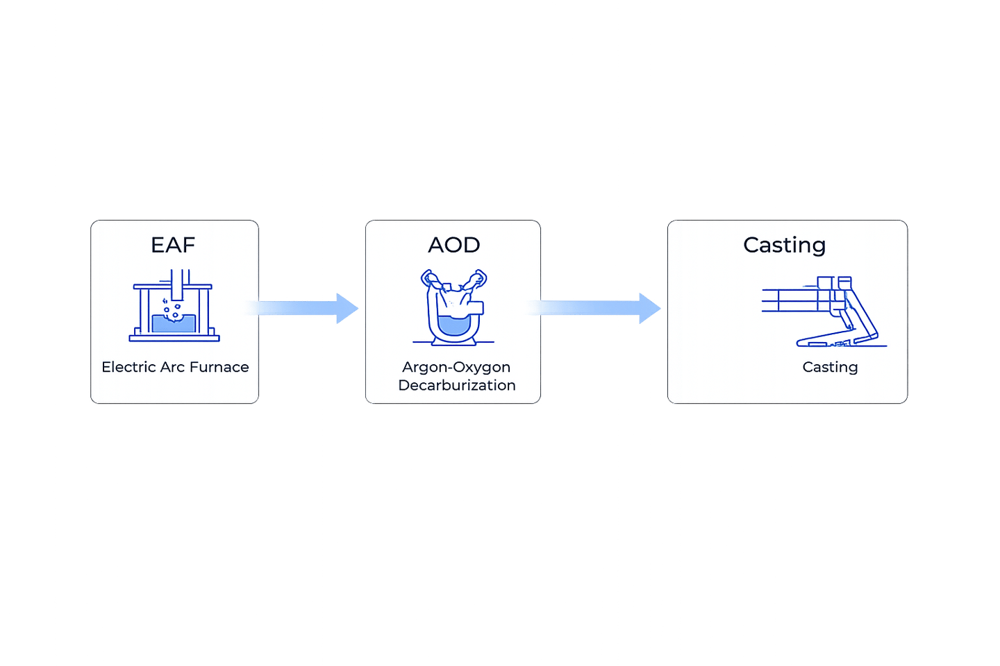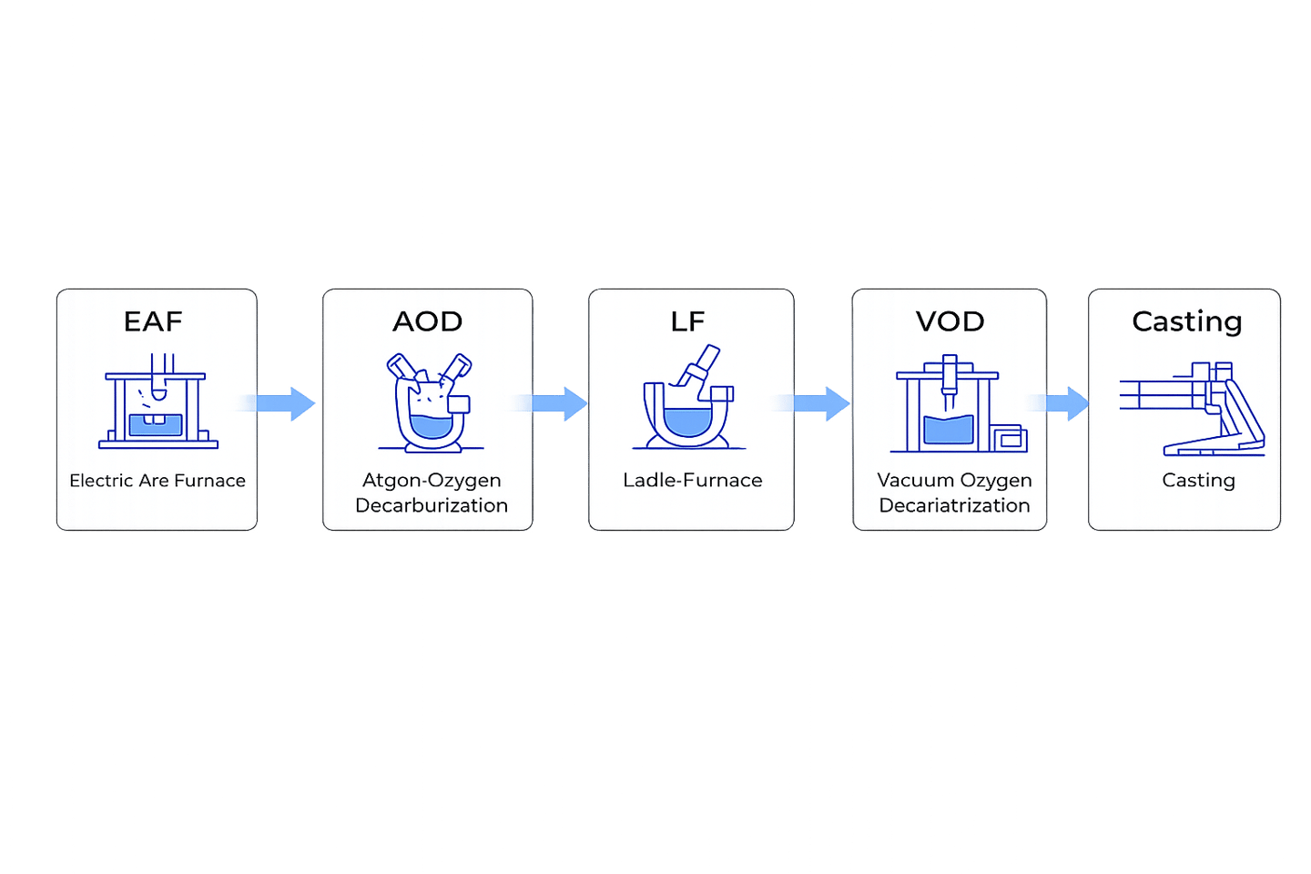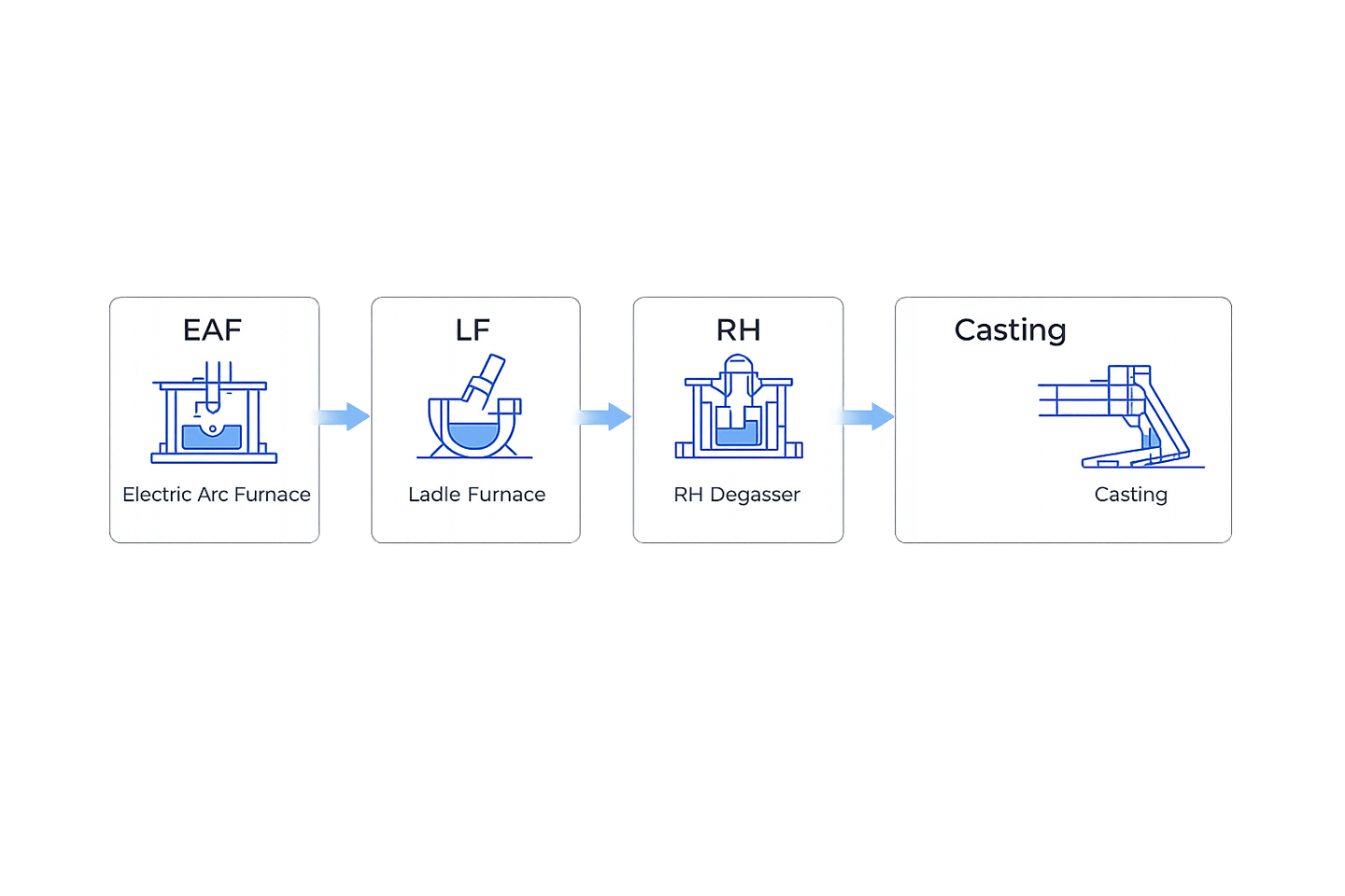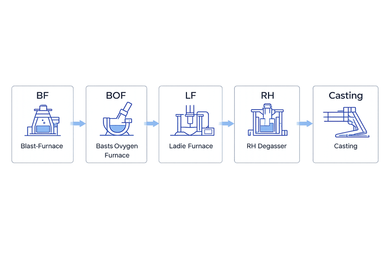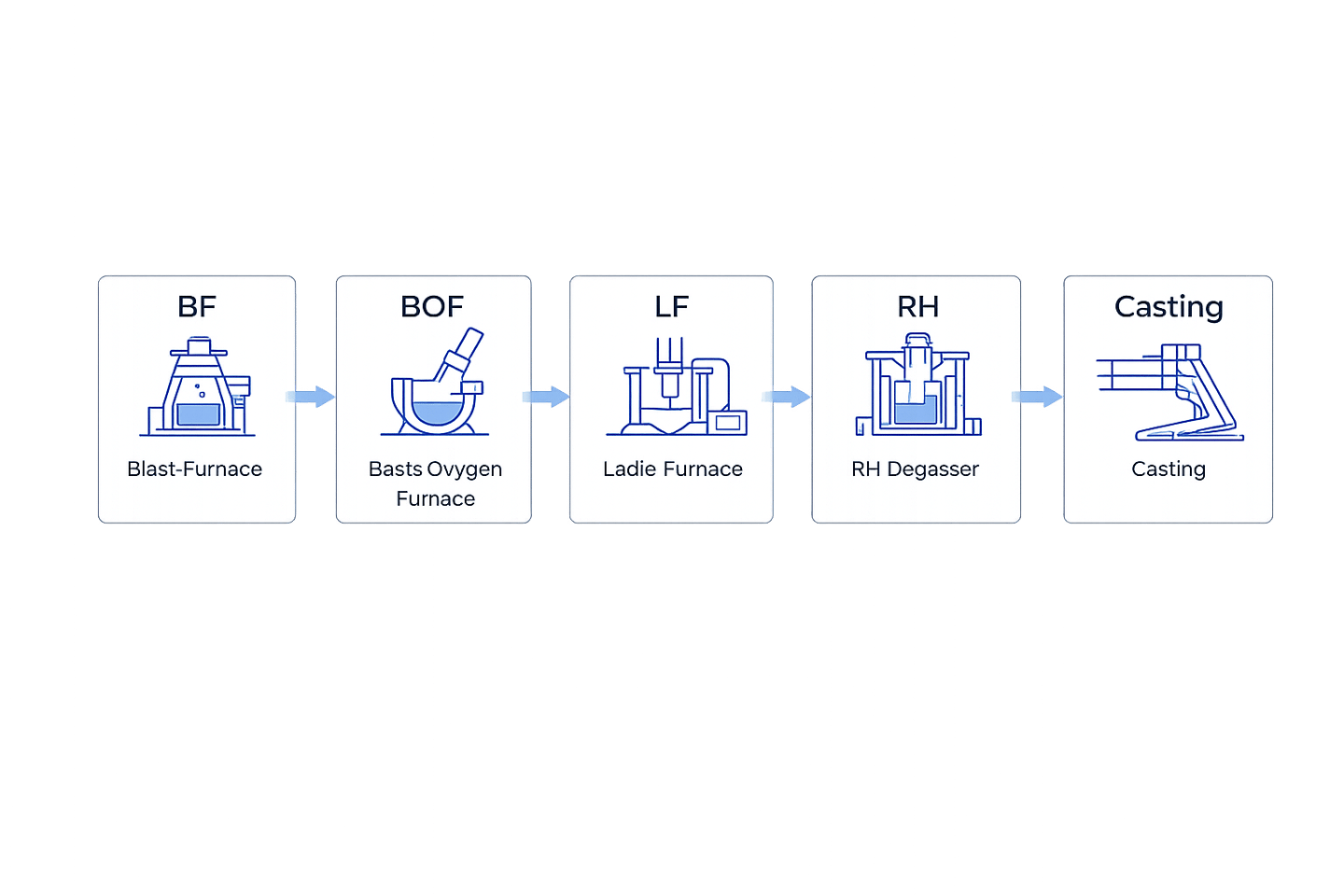 Steelmaking plants follow different production routes, each with its own process logic, equipment and metallurgical objectives.