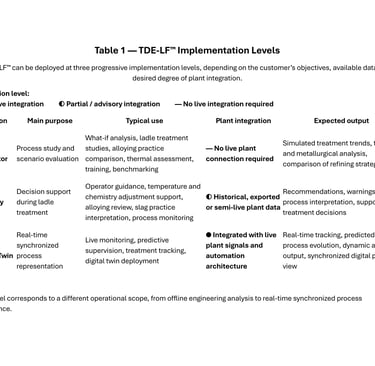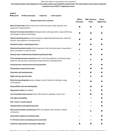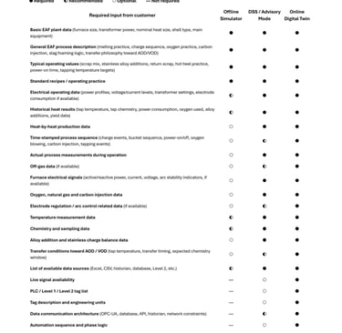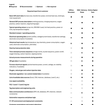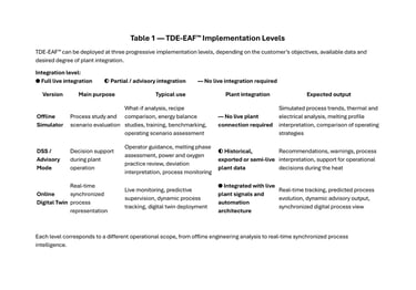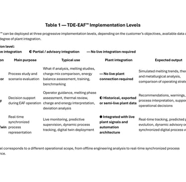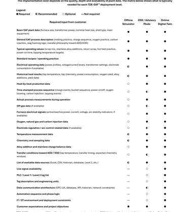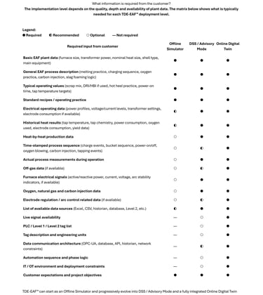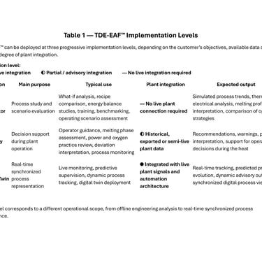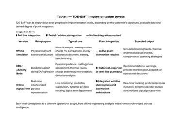 TDE-EAF™ can be implemented at three progressive levels, depending on the customer’s objectives and the amount of plant data available.