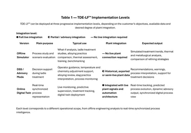 TDE-LF™ can be implemented at three progressive levels, depending on the customer’s objectives and the amount of plant data available.