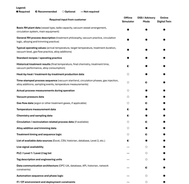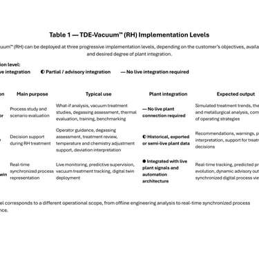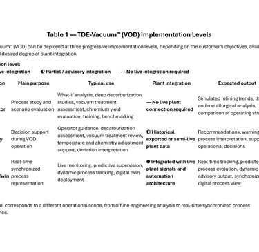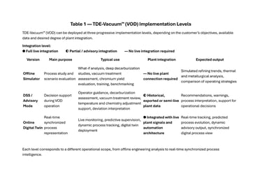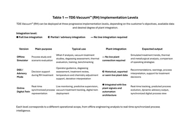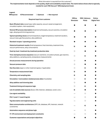 TDE-Vacuum™ RH can be implemented at three progressive levels, depending on the customer’s objectives and the amount of plant data available.