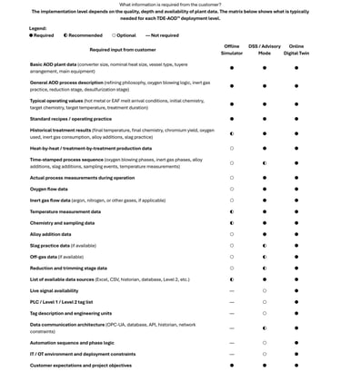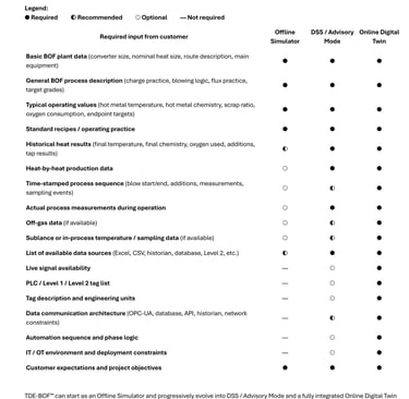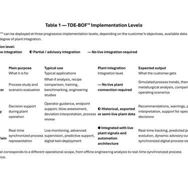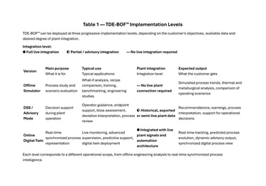 TDE-BOF™ can be implemented at three progressive levels, depending on the customer’s objectives and the amount of plant data available.
