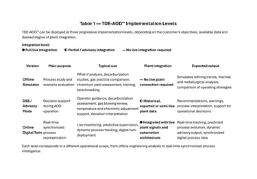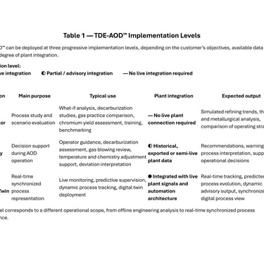 TDE-AOD™ can be implemented at three progressive levels, depending on the customer’s objectives and the amount of plant data available.