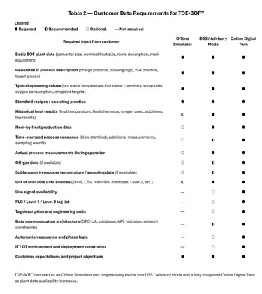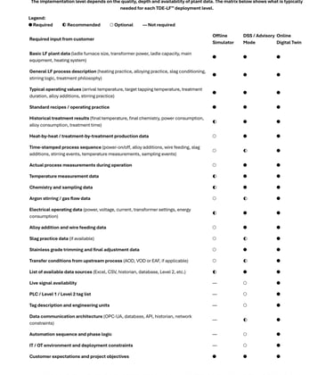 Implementation Levels and Customer Data Requirements for TDE™ Carbon Steel Route