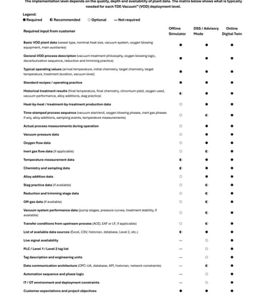 TDE-Vacuum™ VOD can be implemented at three progressive levels, depending on the customer’s objectives and the amount of plant data available.